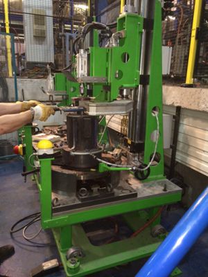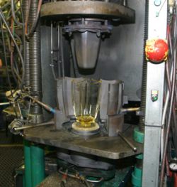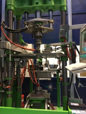 Single station performance in 20 t servo-pressing for Fresnel solar pressing technology; 2 and more servos for pressing with plunger and ring from above and below.