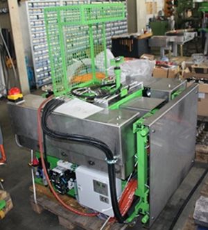 First fully automated production line for speciality glass joining Micro-Melter and roundtable pressing system with revolving pressing units.