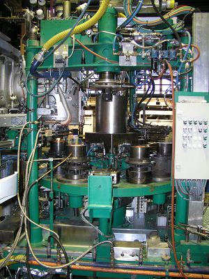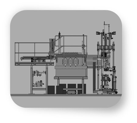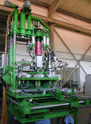 new 6/12 station generation blowing system with combined press-blow and blow-blow technology features and direct feeding technology solutions - and revolving servo-stations both for blowing as well as servo-based revolving parison forming; fully integrated line with servo-based burn-off system (and revolving gas/air burners) for blow moils; for parison shaping – and for yet other applications to come - roundtable pressing systems provide revolving pressing stations for direct feeding and revolving pressing units.