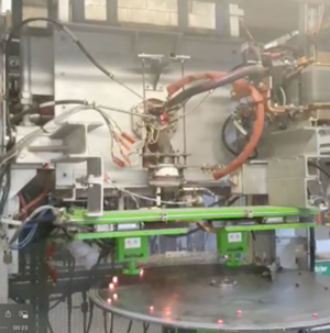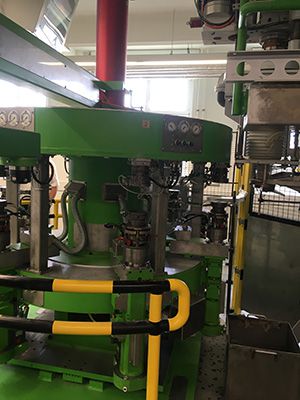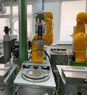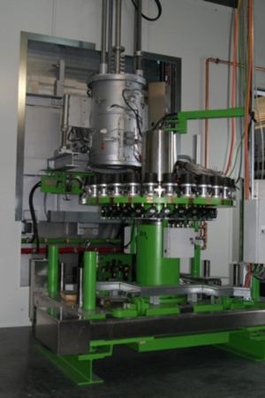 First fully automated production line for speciality glass joining Micro-Melter and roundtable pressing system with revolving pressing units.