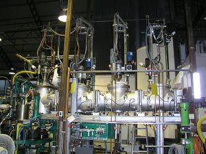 Implementation of a highly complex production line for dispersion mixing, pumping and feeding system into 8-station rotary forming table; complex in numbers: 65 servos and motors for stirrer, pumps and the forming roundtable, 15 heating circuits and 600 electronic in- and output …