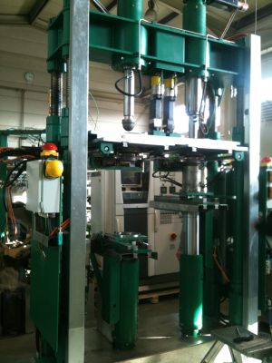 Single station performance in 20 t servo-pressing for Fresnel solar pressing technology; 2 and more servos for pressing with plunger and ring from above and below.