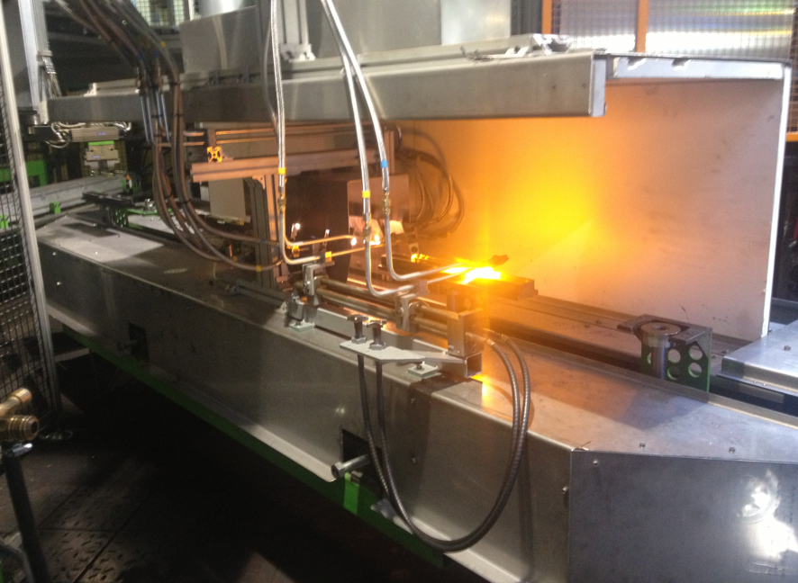 Flame processing applications are an integral part of the forming system like shear-mark re-heating or a rotating burner which processes the seam of plunger and ring in bottom plates of stemware or the conditioning station(s) in the blowing system, where the parison receives segmented heating and cooling impulse prior to blowing to electronically influence the wall thickness distribution of the glass during forming. As dedicated flame processing systems we provide both roundtable as well as oval systems and the design is very much part of the process requirements on the one hand but also the ware-handling strategy from forming to annealing lehr, available space and access areas for staff and vehicles. And there are certainly economic aspects of being mindful with the use of burner utilities and provide strategies to know and control what is required and how much is enough.